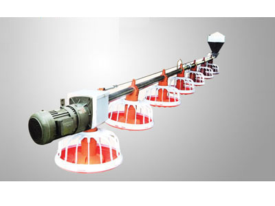 由料斗、輸料管、絞龍、料盤、懸掛升降裝置、電機和料位傳感器組成。其主要功能是把料斗中的料輸送到每個料盤中去,保證肉雞的食用,并由料位傳感器來自動控制電機的輸送啟閉,達到自動送料的目的。