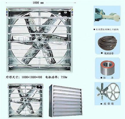 鍍鋅層:120g/㎡ 外框板材厚度:0.8mm 百葉窗厚度:0.45mm 扇葉板材厚度:1.2mm 集風(fēng)器厚度:0.7mm 電機(jī):國標(biāo)銅芯CCC認(rèn)證 電機(jī)功率:0.37KW 軸承:人本(美國技術(shù)中國公司) 輪轂:高強(qiáng)度鋁合金 三角帶:三力士 |